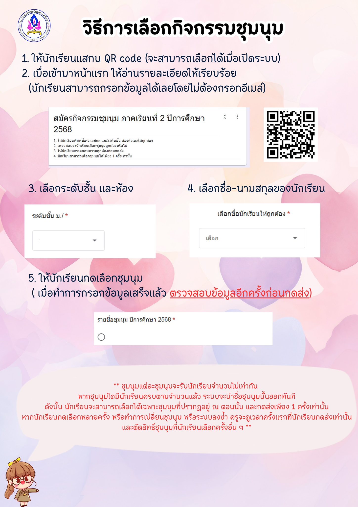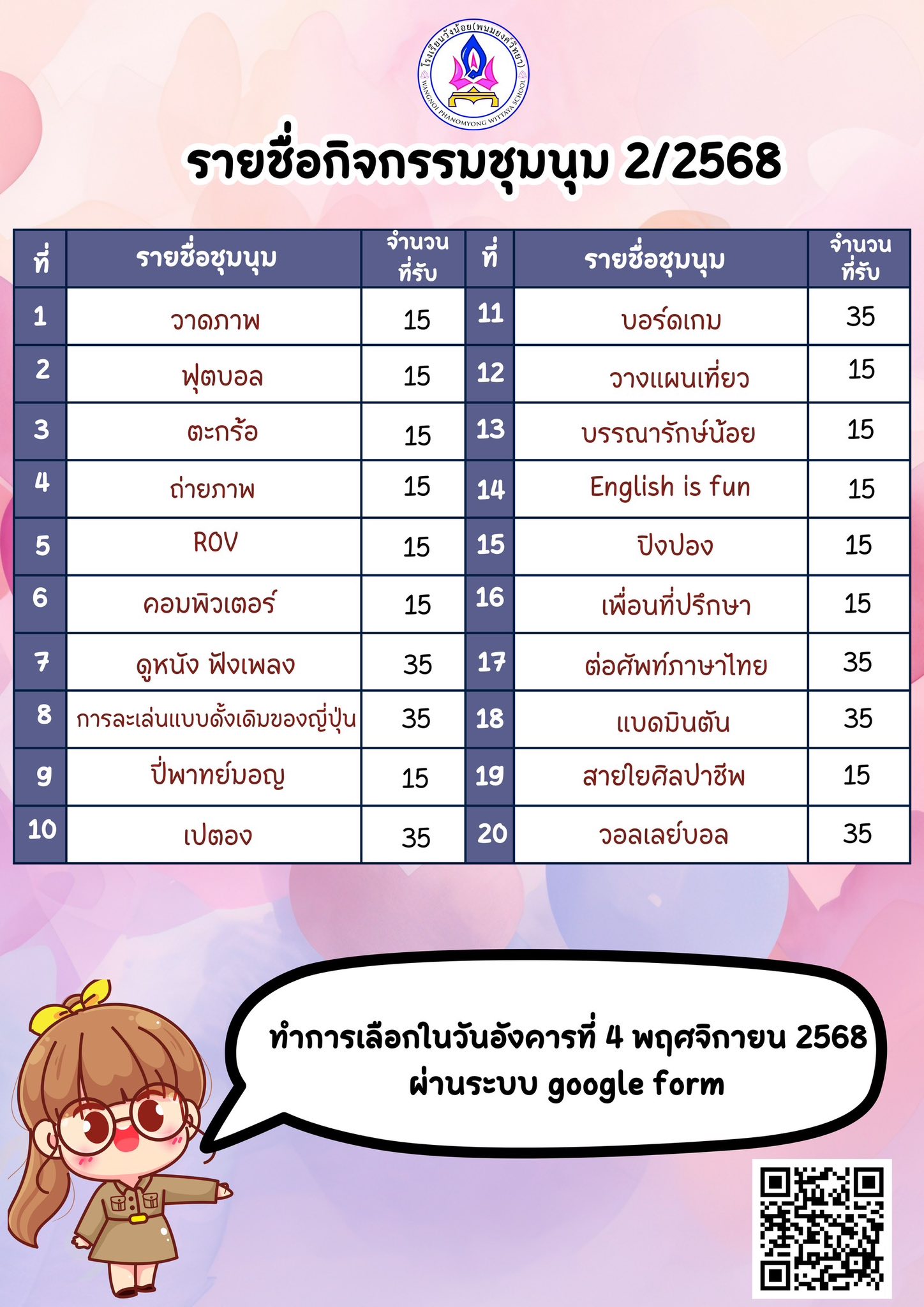 รายชื่อกิจกรรมชุมนุม ภาคเรียนที่ 2 ปีการศึกษา 2568