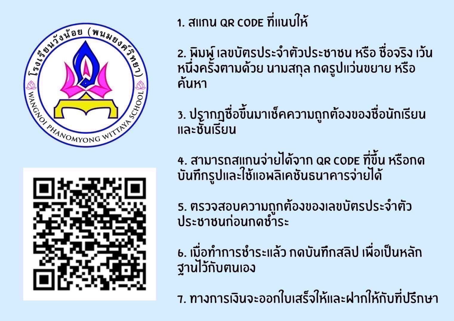 โรงเรียนวังน้อย(พนมยงค์วิทยา) ขอแจ้งให้นักเรียนและผู้ปกครองทราบว่าสามารถดำเนินการ ชำระค่าบำรุงการศึกษา ภาคเรียนที่ 2 ปีการศึกษา 2568 (รอบที่ 2)