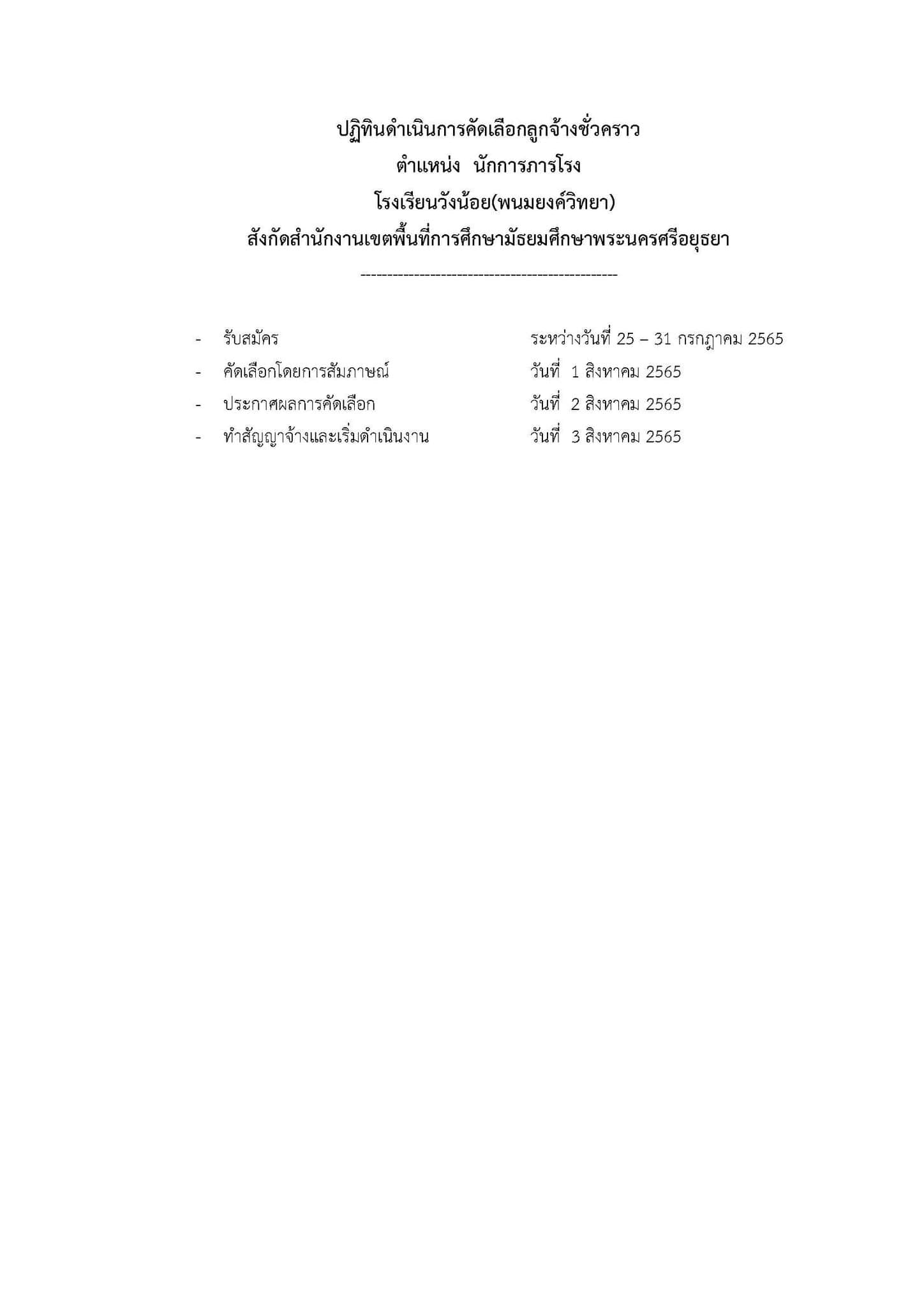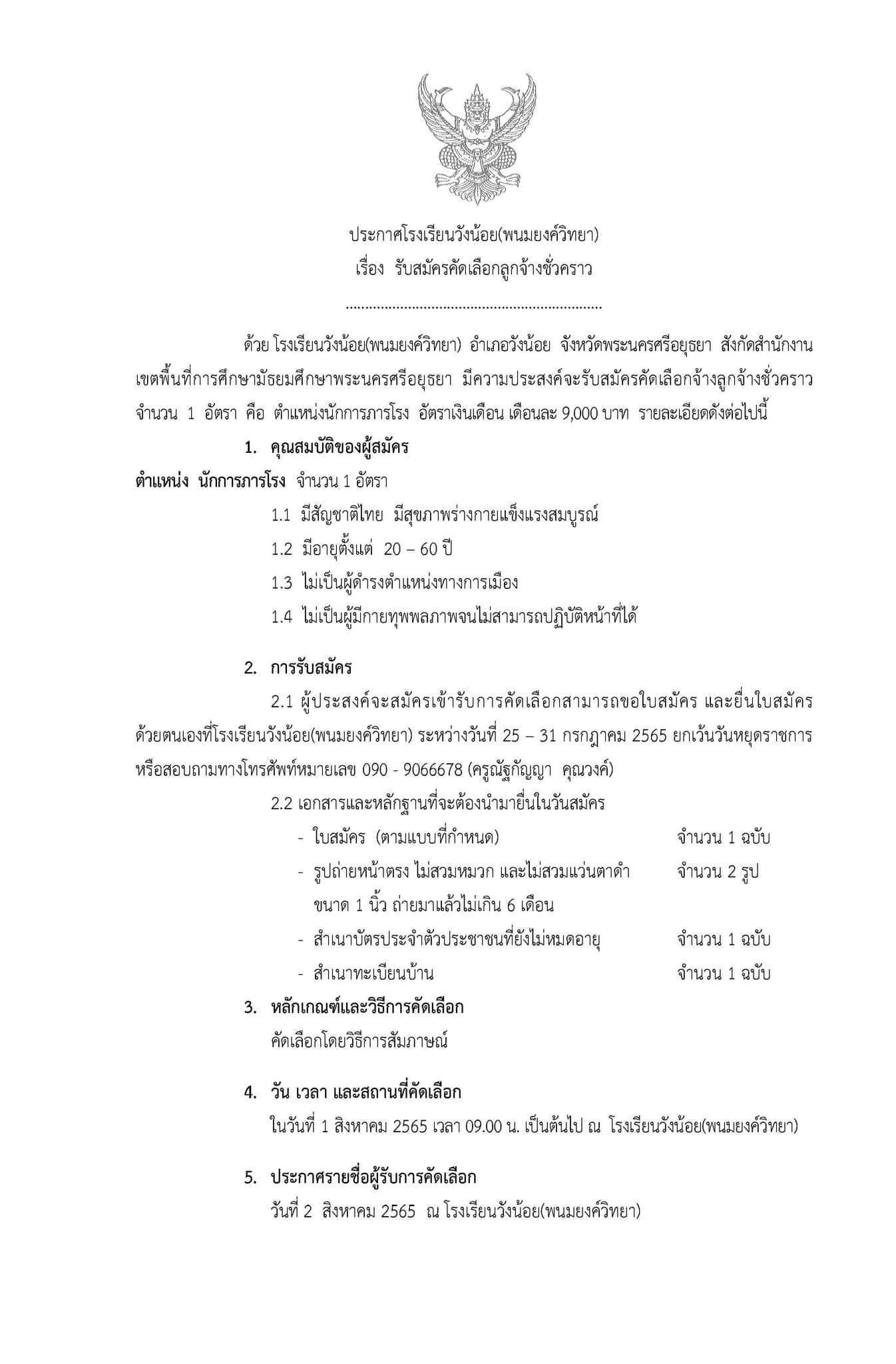 ประกาศรับสมัครคัดเลือกลูกจ้างชั่วคราว ตำแหน่งนักการภารโรง 1 ตำแหน่ง