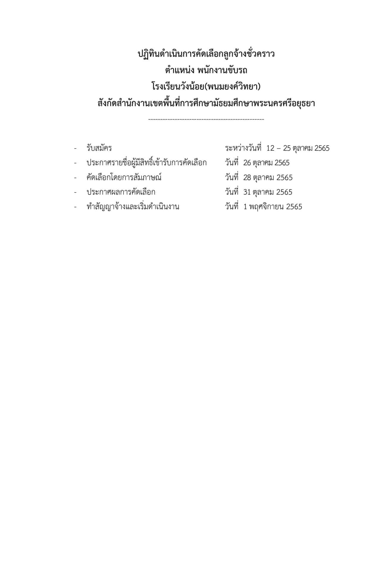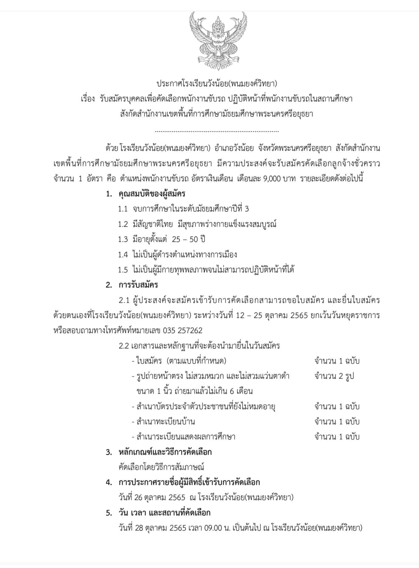 ประกาศรับสมัครพนักงานขับรถ จำนวน 1 ตำแหน่ง