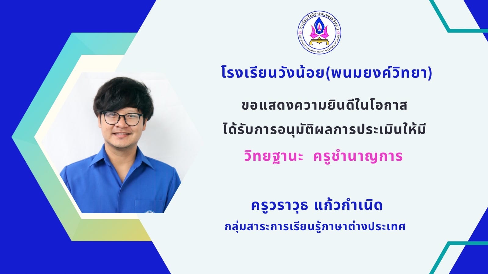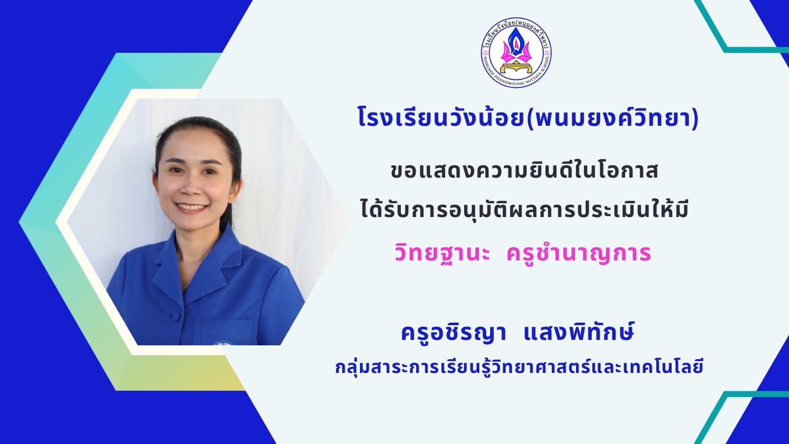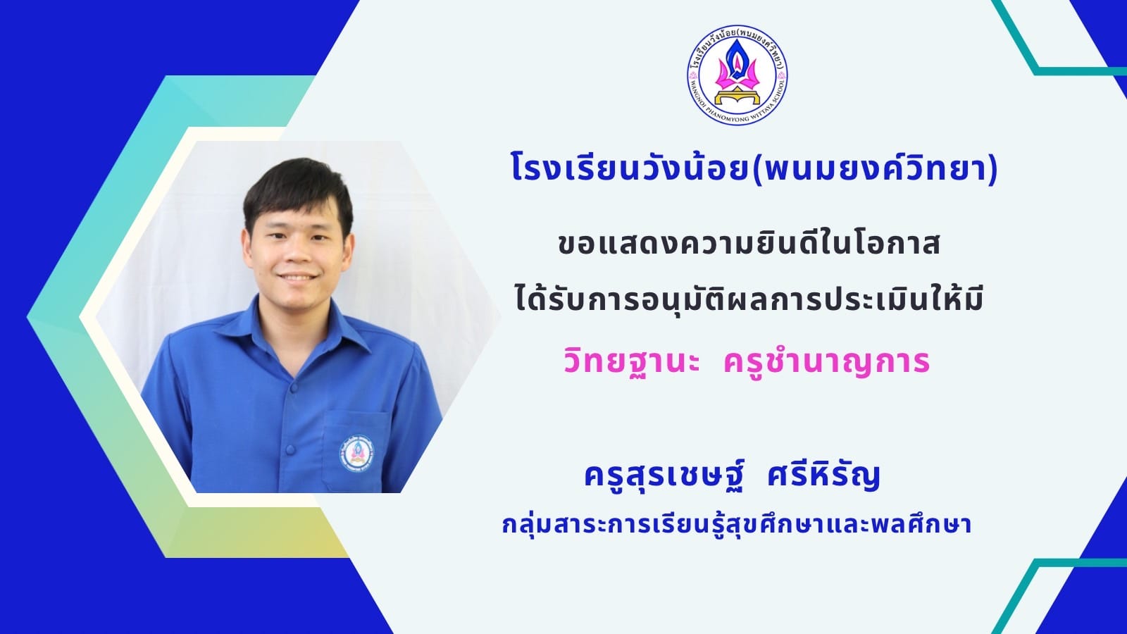 ขอแสดงความยินดีกับคณะครู เนื่องในโอกาสได้รับการอนุมัติ เลื่อนวิทยฐานะ ครู ชำนาญการ