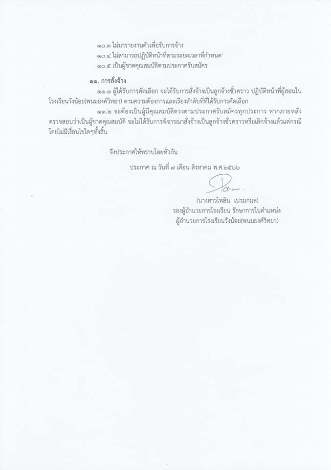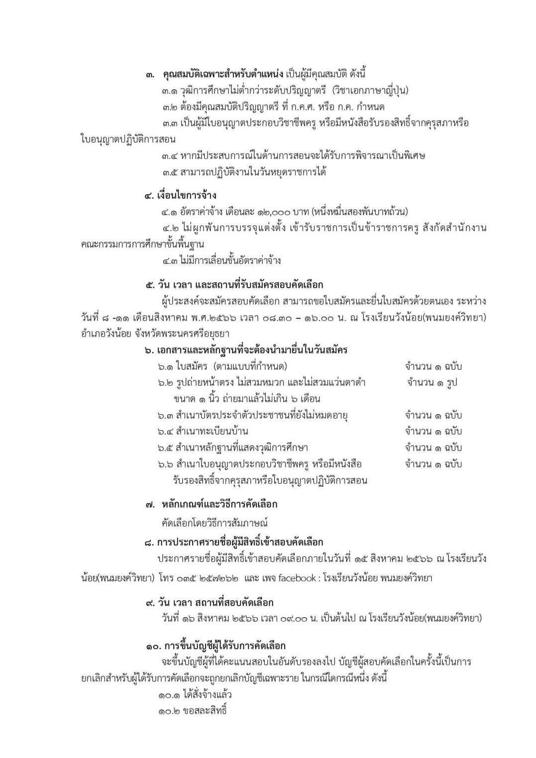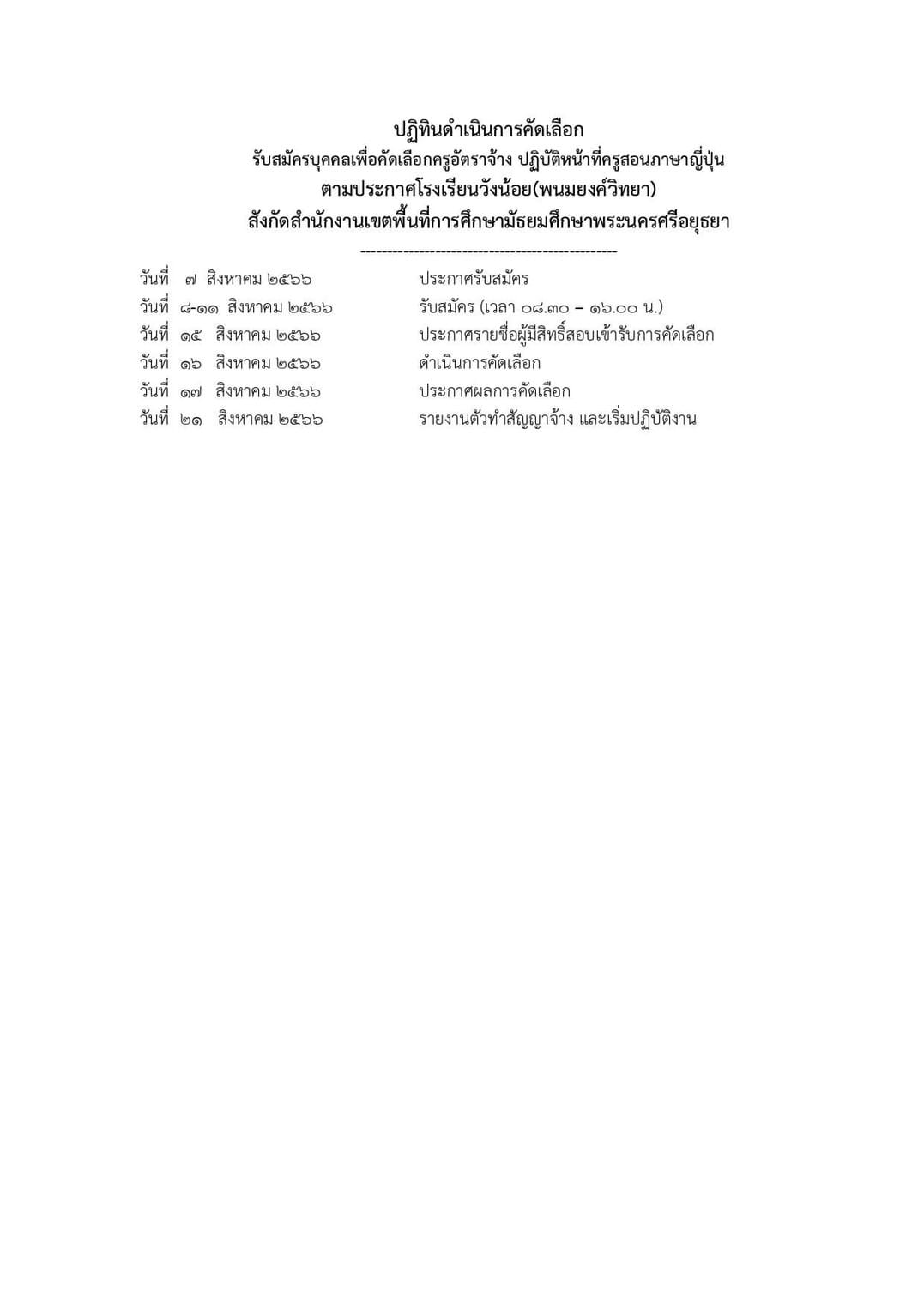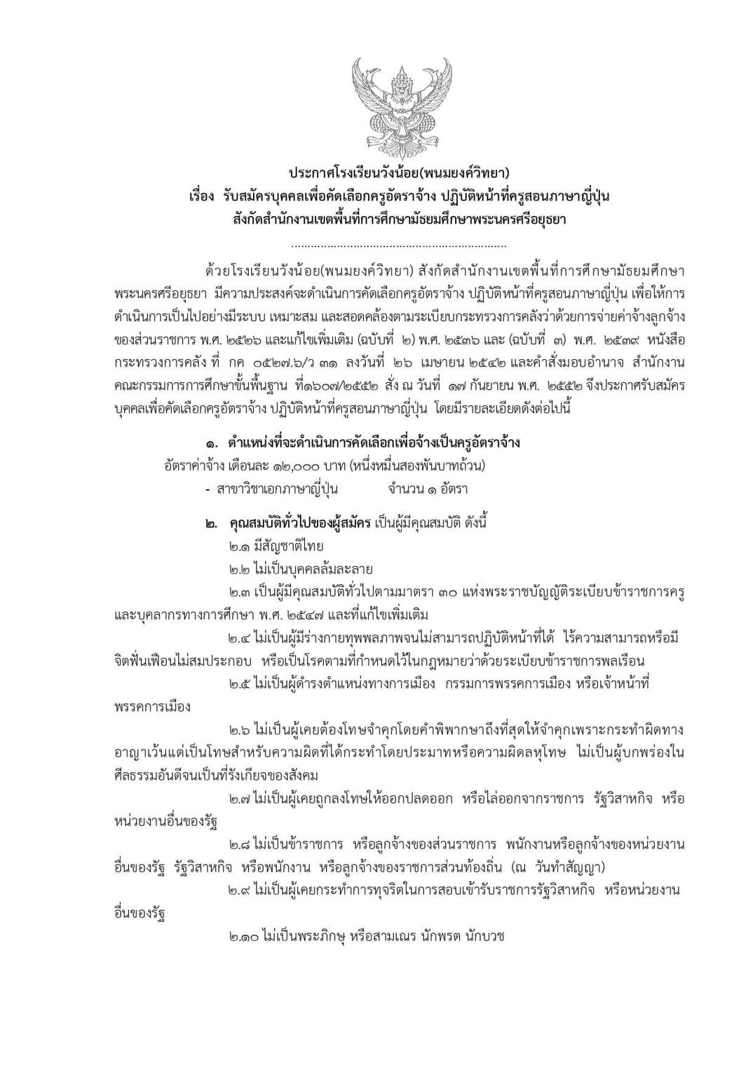 รับสมัครบุคคลเพื่อคัดเลือกครูอัตราจ้าง ปฏิบัติหน้าที่ครูสอนภาษาญี่ปุ่น