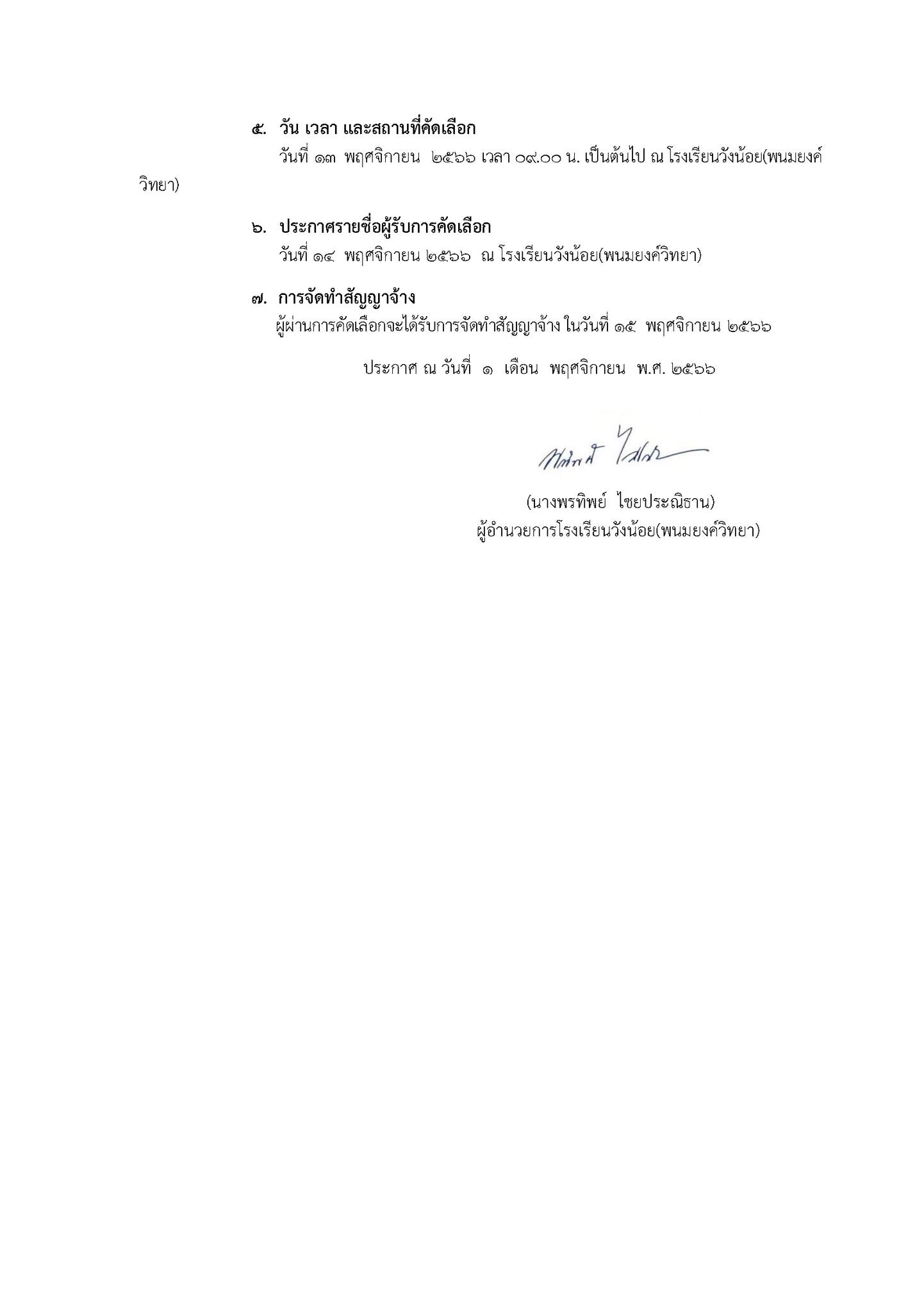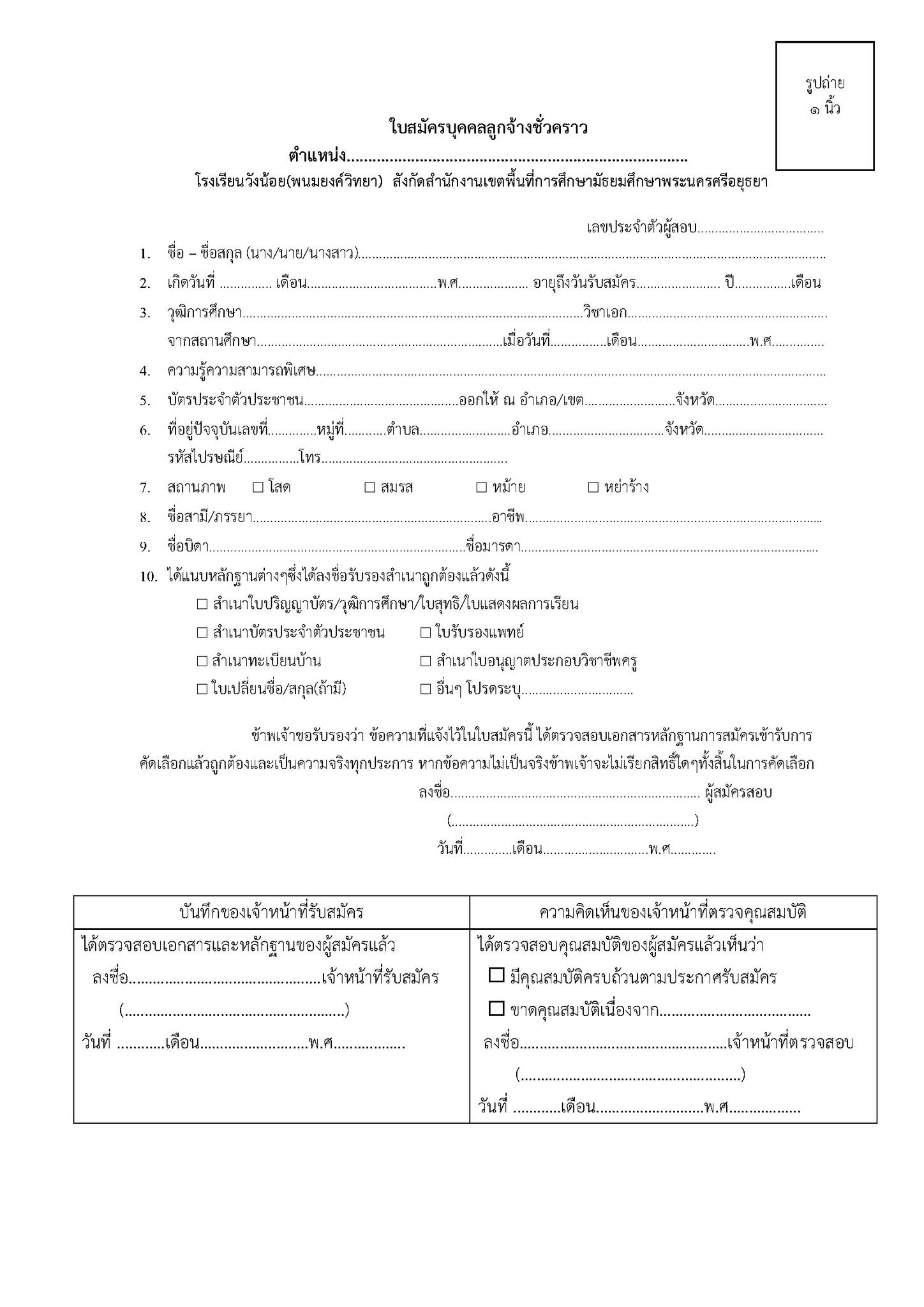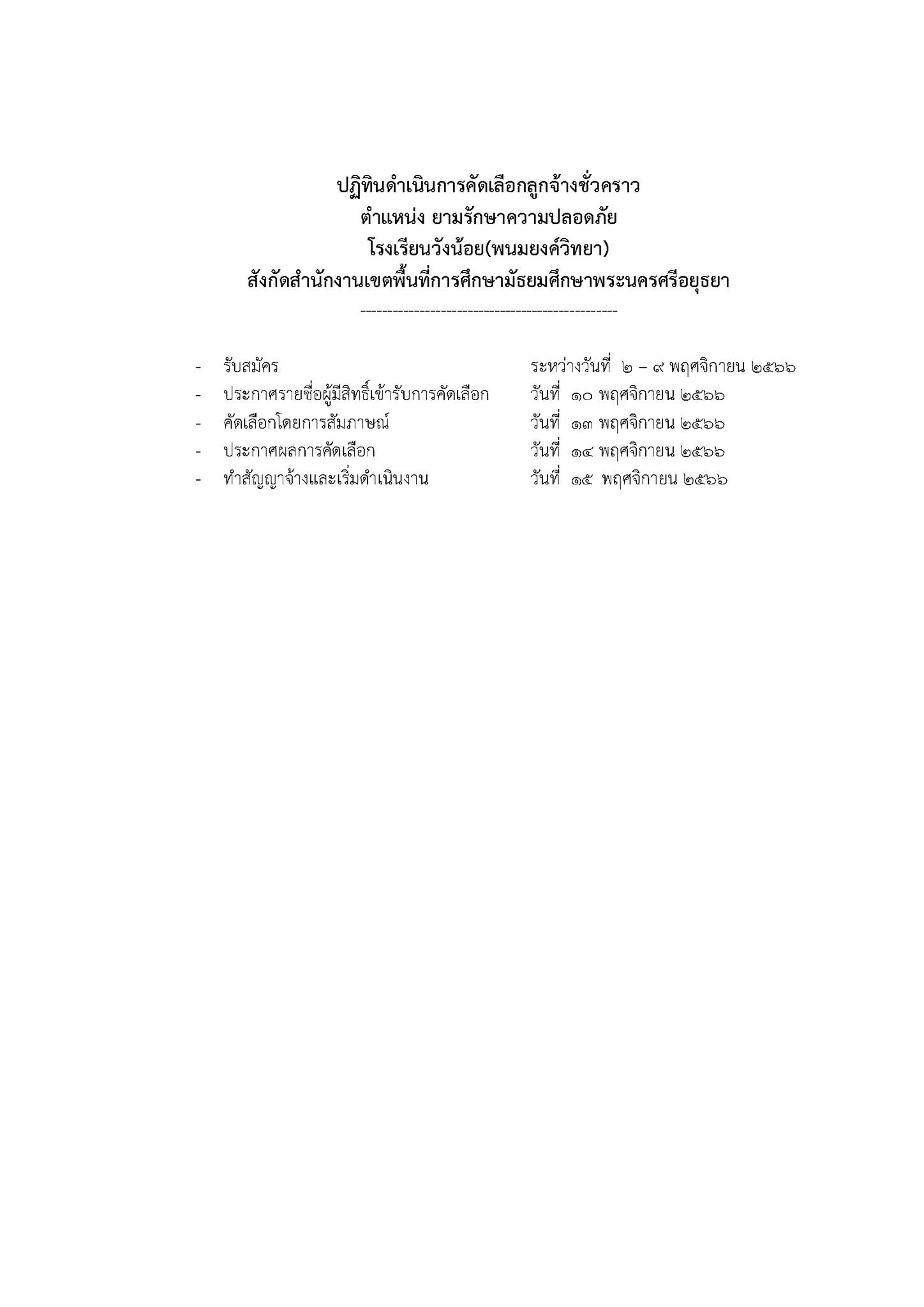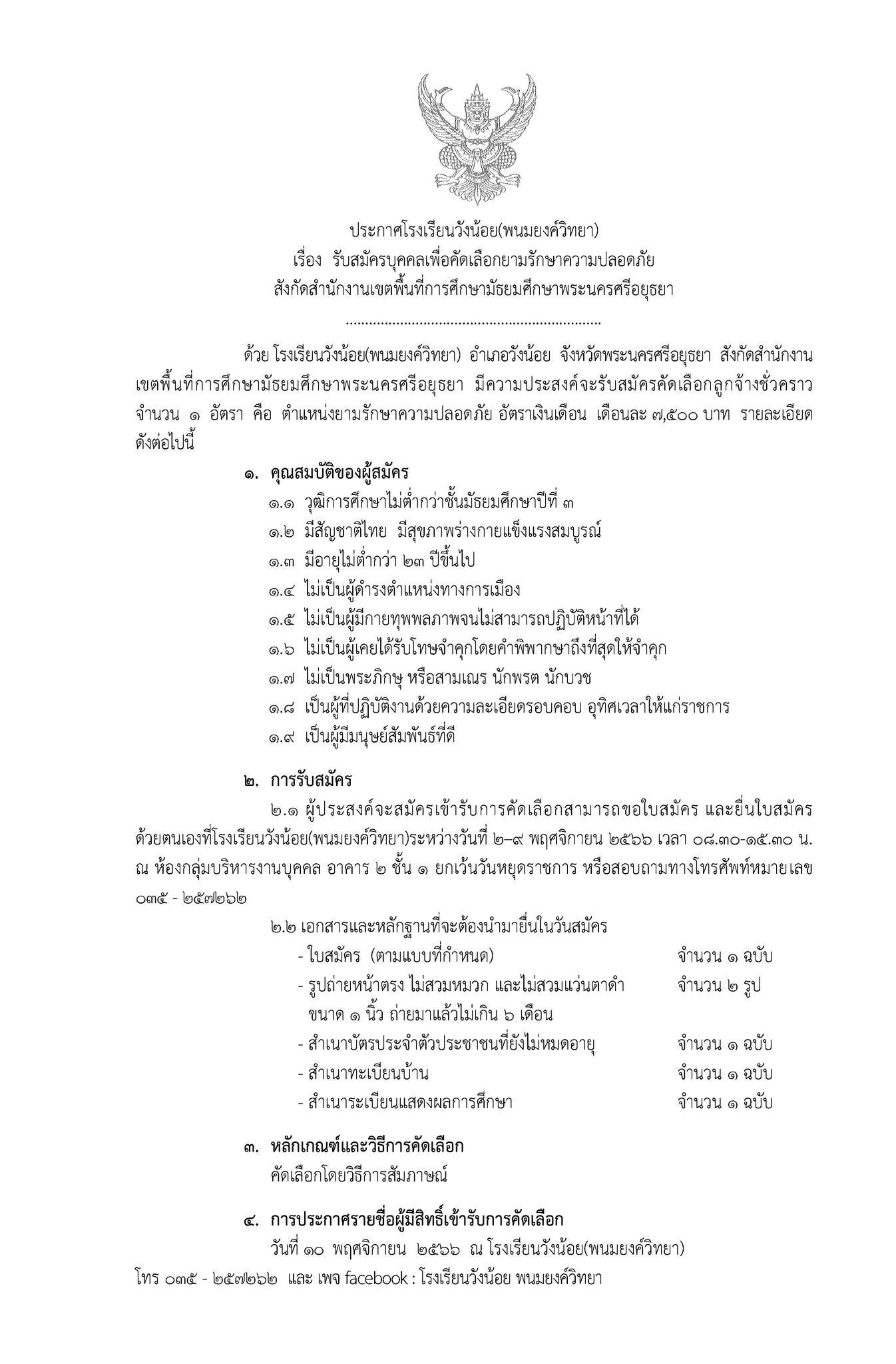 ประกาศโรงเรียนวังน้อย(พนมยงค์วิทยา) เรื่อง รับสมัครบุคคลเพื่อคัดเลือกยามรักษาความปลอดภัย