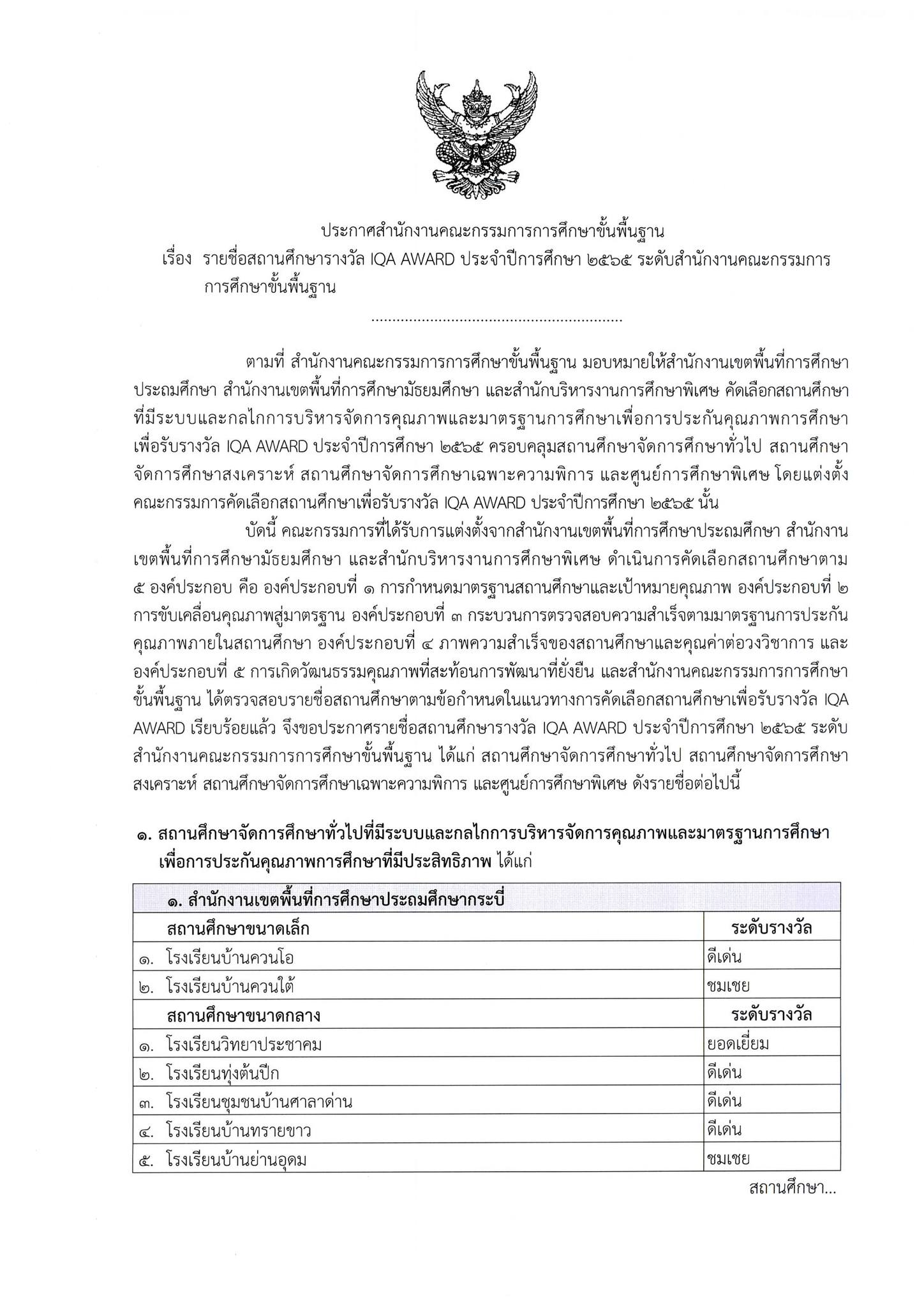 ได้รับคัดเลือกเป็นสถานศึกษาที่มีคุณสมบัติตามเกณฑ์ รางวัล IQA AWARD ประจำปี2565