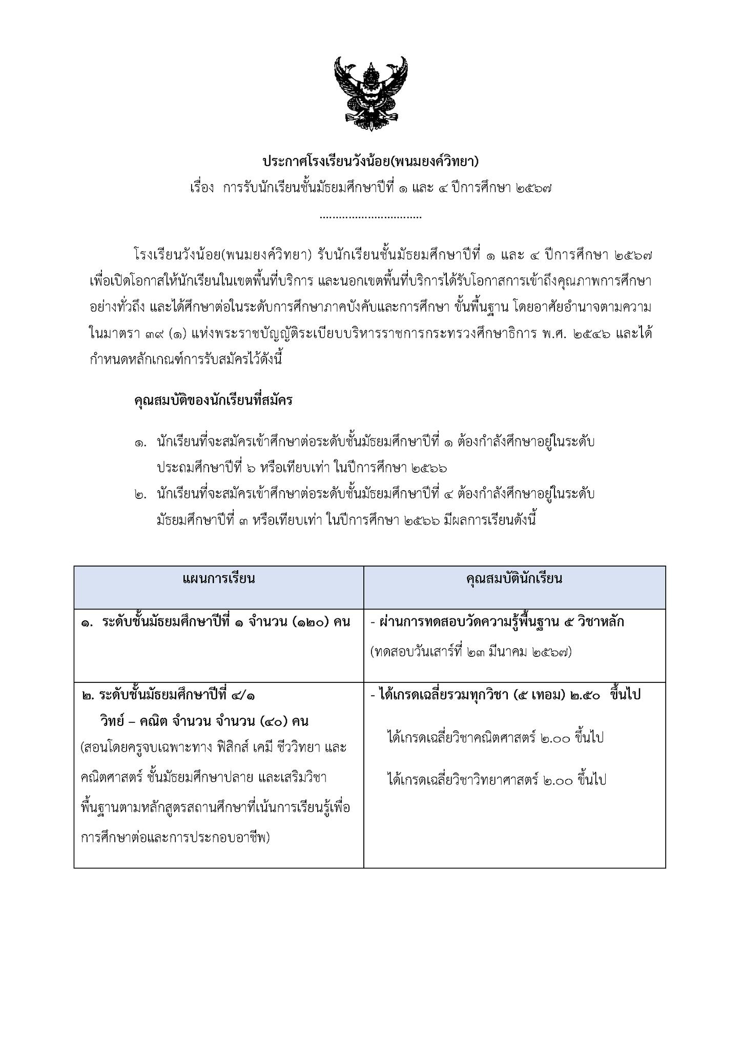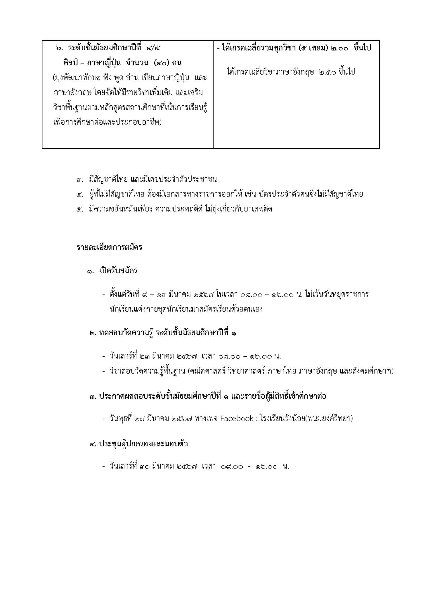 การรับนักเรียนชั้นมัธยมศึกษาปีที่ 1 และ 4 ปีการศึกษา 2567