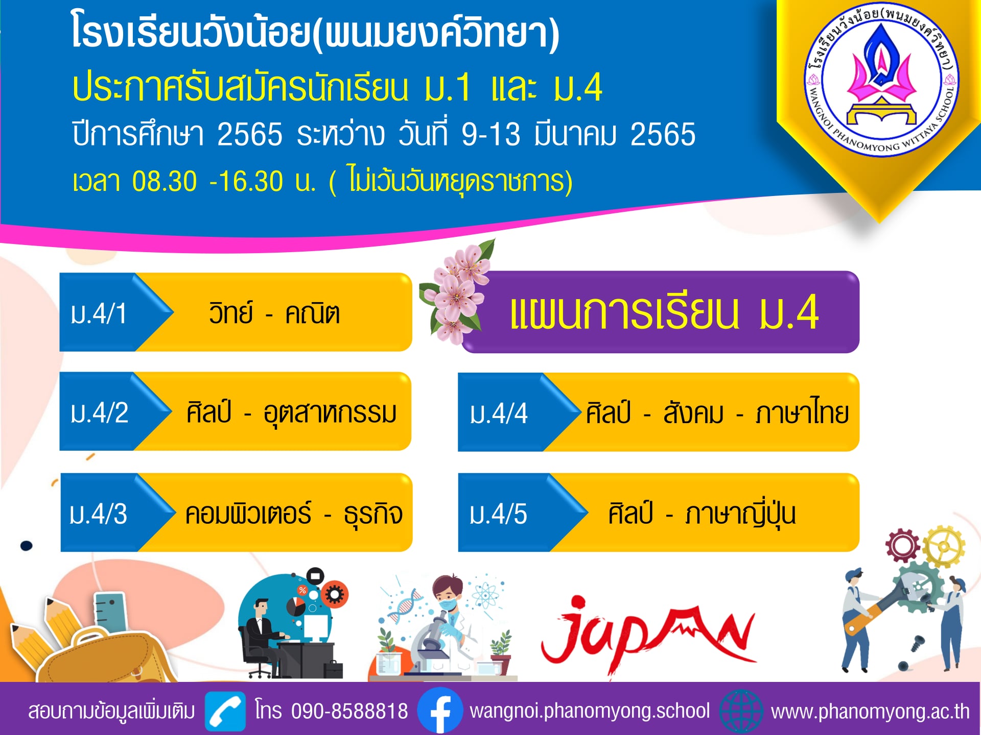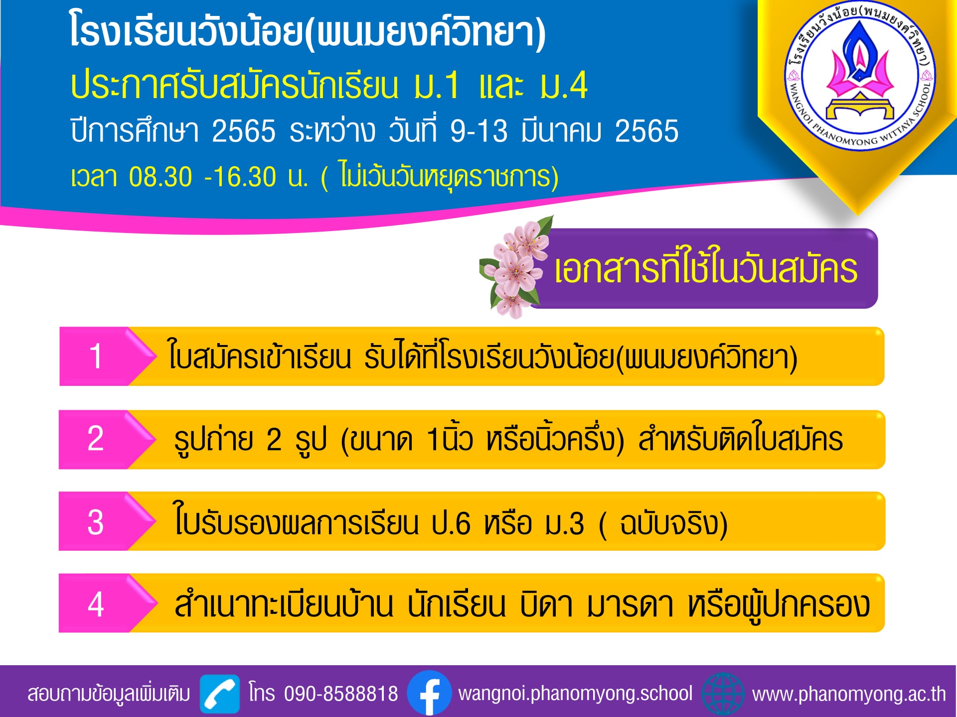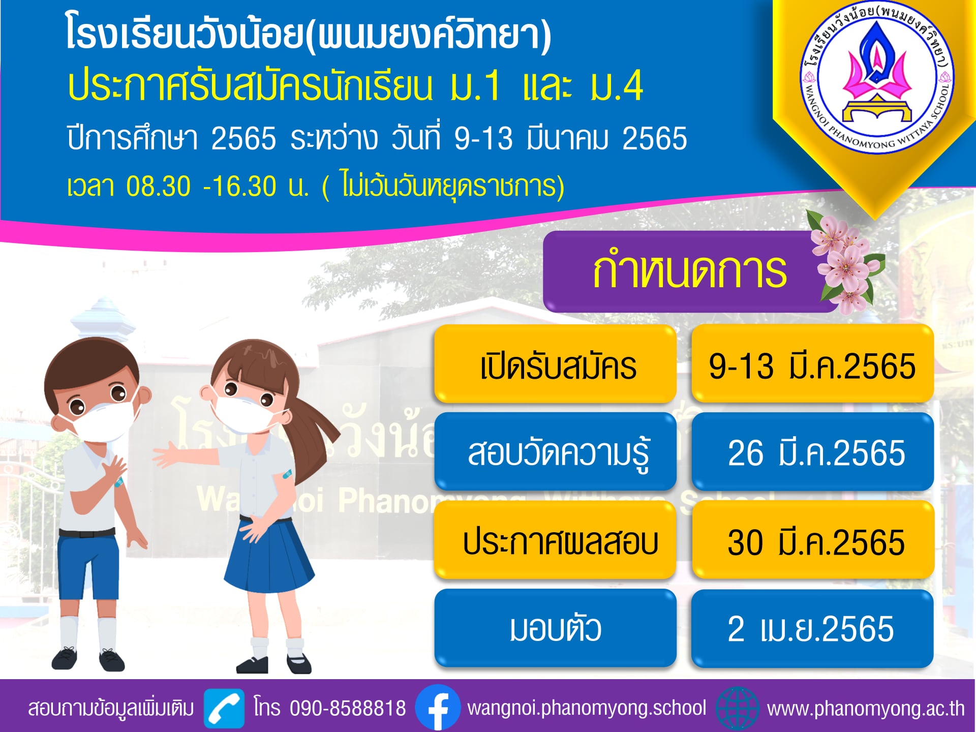 กำหนดการสมัครเข้าศึกษาต่อระดับชั้น ม.1 และ ม.4 ปีการศึกษา 2565