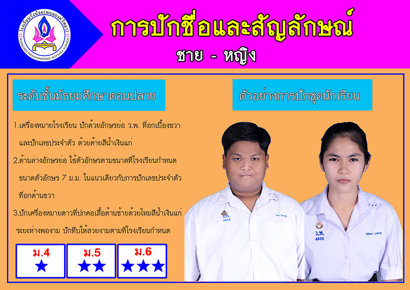 ตัวอย่างการปักชื่อและสัญลักษณ์